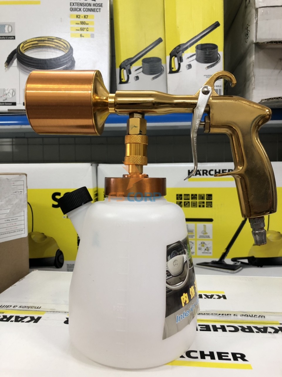 Bình phun bọt tuyết dọn nội thất, khoang máy, xịt gầm khí nén Tornado 1 lít được ứng dụng trong việc dùng khí nén áp lực 2 -8 bar để tạo một dòng khí lốc xoáy quấn sạch hết bụi bẩn trong khe nhỏ trong ô tô với lượng dung dịch được hút mang theo dòng khí để tẩy rửa hết cặn bẩn mà ở những nơi không thể lau chùi được, cho không gian sạch sẽ trong tích tắc mà không cần tốn nhiều công sức.Đặ